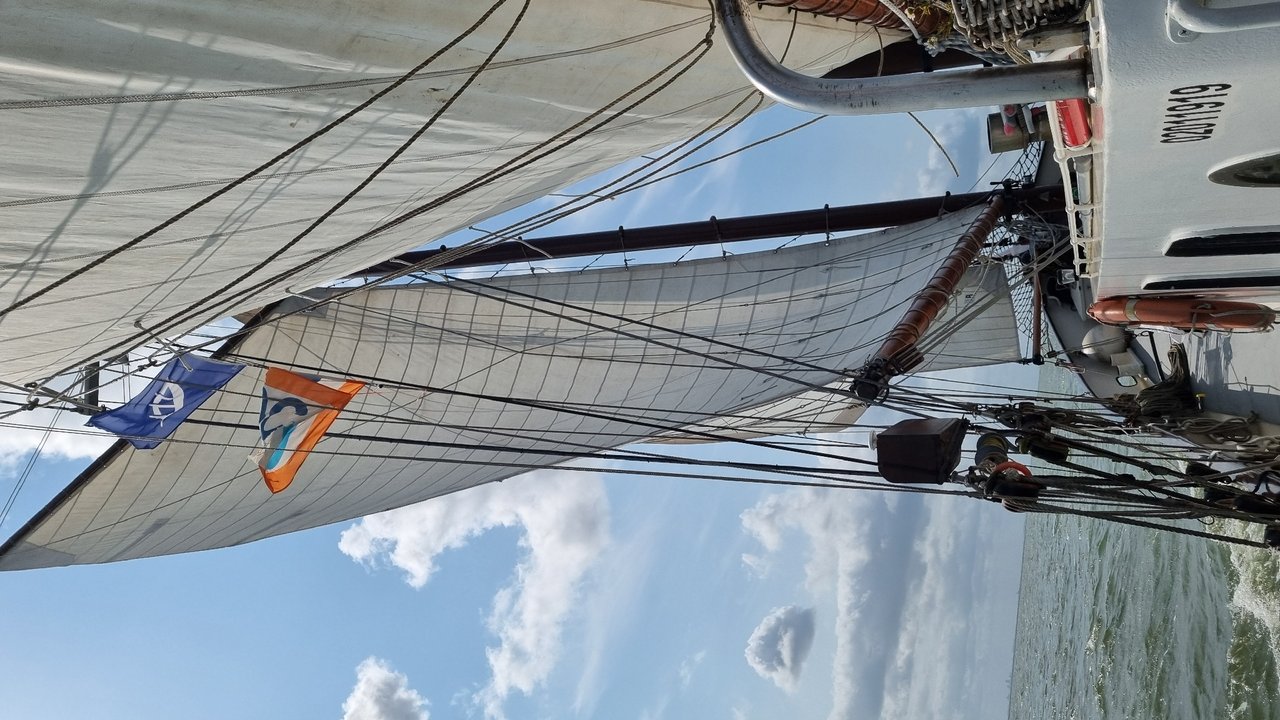 On the Anna, 20m. Build 1931 as traditional sailing vessel. A shirtvtrip to Rotterdam for wereldhavendagen